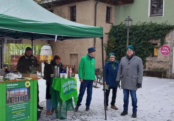 Infostand der Ansbacher Grünen in der Innenstadt. Der Ort, wo man die Ansbacher Grünen im direkten Gespräch kennenlernen kann, zum Beispiel den OB-Kandidaten Oliver Rühl. Oder Anregungen und Kritik zum Stadtgeschehen bei den weiteren amtierenden Stadträt:innen Meike Erbgut-Feldner, Simon Mayr, Sabine Stein-Hoberg und Dr. Bernhard Schmid anbringen kann. Viele von den Kandidat:innen für die Stadtratswahl am 8. März sind vor Ort. Nutz die Chance, sie kennenzulernen!