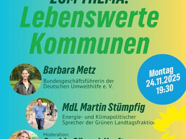 Herrieden. Als Ortsverband Herrieden & Umgebung laden wir herzlich zum Vortrag und Diskussionsabend „Lebenswerte Kommunen“ am Montag, den 24. November 2025, um 19:30 Uhr im Bergwirt Herrieden ein. Mit Martin Stümpfig, energie- und klimapolitischem Sprecher der Grünen…