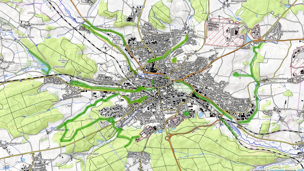 Rezat, Onoldsbach, Geisengrundbächlein, Dombach, Feuchtlachgraben, Eichenbach, Hennenbach, Gumbertusbach