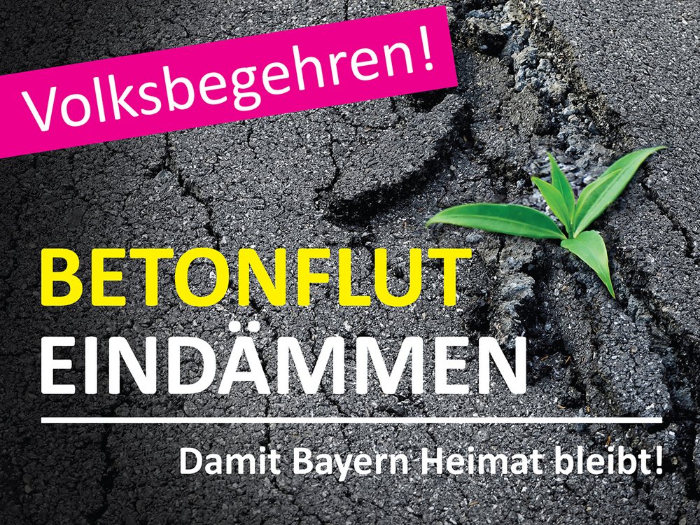 Wie Sie aus der öffentlichen Presseberichterstattung in den letzten Monaten entnommen haben, sammelt in Bayern ein Bündnis von Organisationen Unterschriften für ein Volksbegehren gegen den Flächenfraß. Die Volksinitiative hat zum Ziel, ins bestehende bayerische Landesplanungsgesetz (BayLplG ab 2020 ein Flächensparziel einzufügen. Zum Schutz von Boden und zum sparsamen Umgang mit Fläche, soll in diesem Gesetz eine Höchstgrenze des täglichen Flächenverbrauchs auf 5ha pro Tag festgeschrieben werden. Mit dem Gesetz verfolgen die Antragsteller, dass in Bayern eine verbindliche Grenze für den Flächenverbrauch – der Umwandlung von unbebauter Fläche und Natur in Siedlungs- und Verkehrsfläche – eingeführt wird. Nachdem inzwischen bayernweit die notwendigen Unterstützerunterschriften für den Zulassungsantrag des Volksbegehren mit 46.000 Unterschriften erreicht wurden, zeichnet sich ab, dass bald über die Zulässigkeit des Antrag auf ein Volksbegehren durch das bayerische Innenministerium entschieden wird. Wenn die Zulässigkeit gegeben ist wäre der erste Schritt getan für den Erfolg unseres gemeinsamen Volksbegehrens geschafft. Nach der Erklärung der Zulässigkeit startet dann, mit einer Wartezeit von drei Monaten, das eigentliche Volksbegehren, die höchste Hürde. Dazu müssen in Bayern innerhalb von 14 Tagen 10% der bayerischen Bevölkerung rund 1.000.000 Bürgerinnen und Bürger ihre Unterschrift in die für sie zuständigen Gemeindeverwaltung in die vorgefertigten Listen eintragen. Um diese Hürde zu nehmen, müssen wir eine breite Unterstützung organisieren und unsere Aktivitäten koordinieren.