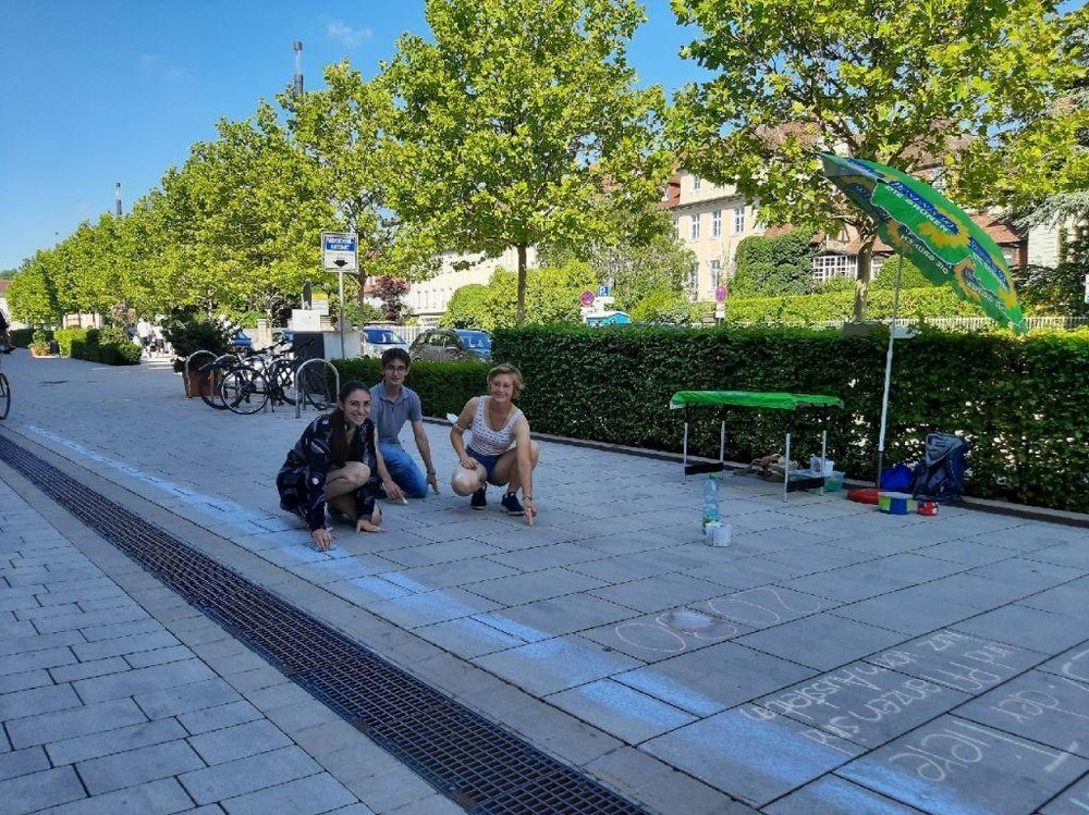 Als Reaktion auf den katastrophalen Jahresbericht des IPCC haben wir einen um einen Klimawalk erstellt. Bei dem Infostand am 14. August zeichneten wir einen 100-Jahre langen Zeitstrahl auf die Promenade. Auf dieser Zeitskala konnte man sich die Entwicklung und die Folgen des Klimawandels vor Augen führen. Dabei wurde eindrucksvoll deutlich, dass sich die Erde exponentiell erwärmt. Dauerte ein Anstieg der weltweiten Durchschnittstemperatur um 0,5°C zwischen 1960 und 2000 noch 40 Jahre, so wird in den nächsten 10 Jahren ein Anstieg um diesen Betrag auf 1,5 °C erwartet. Diese Erwärmung wird große Teile der Erde unbewohnbar machen und vermutlich bis 2040 zu 200 Millionen Klimaflüchtlingen führen.