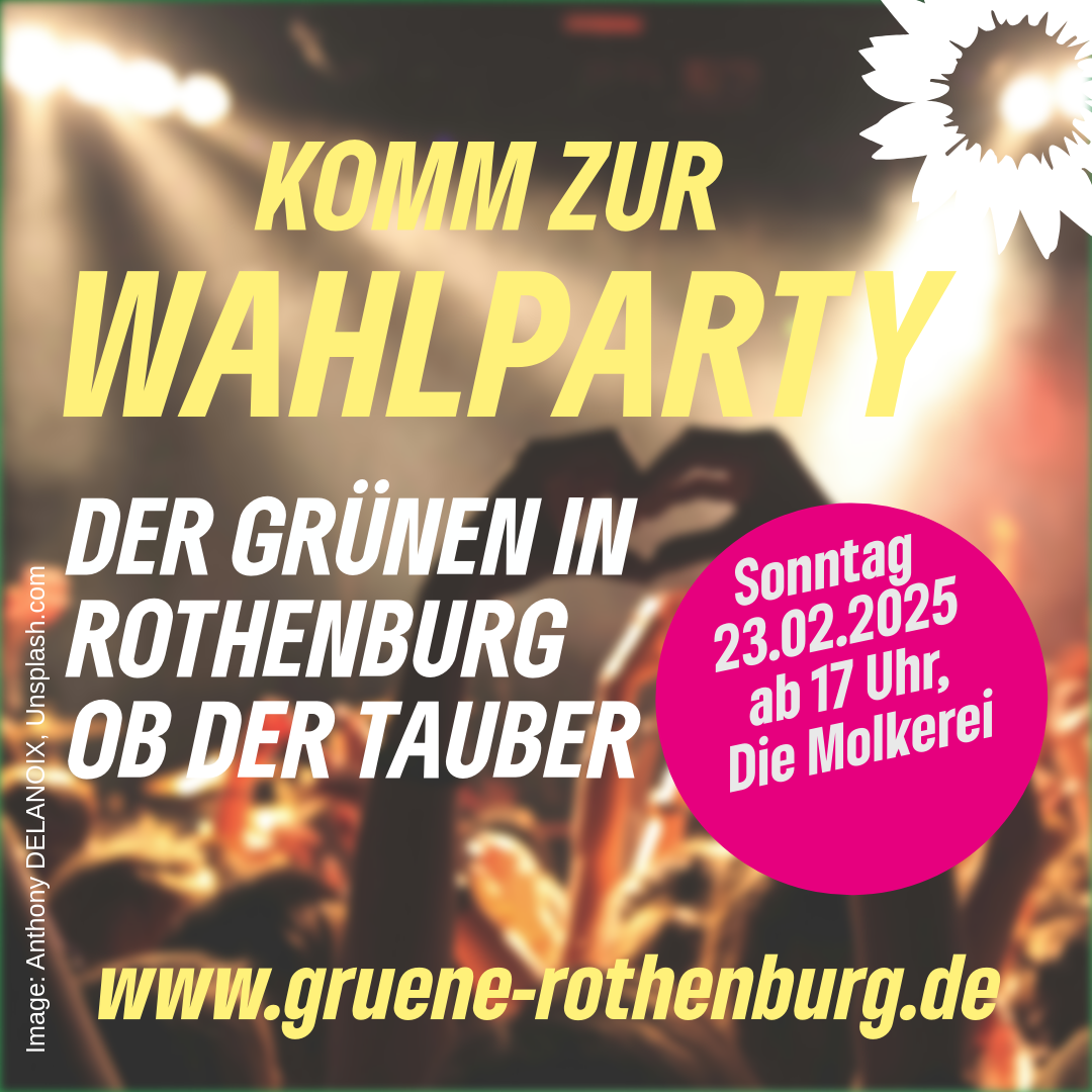 Komm zur Bundestagswahlparty der Grünen in Rothenburg ob der Tauber.