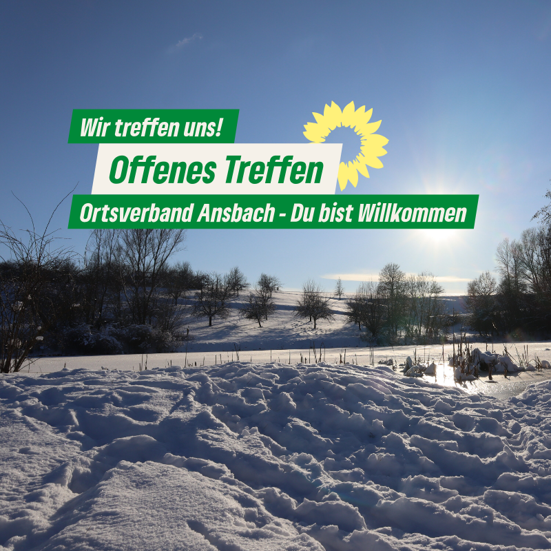 Ansbach/Ortsverband. Das nächste Treffen der Ansbacher Grünen findet am Donnerstag, 9.01.2025 um 19:30 Uhr im Grünen Büro statt.