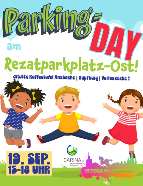 Der Verein Carina e.V. zeitgemäße Mobilität für Ansbach koordiniert dieses Jahr die Ideen. Mit Sitzmöglichkeiten und Aktionsflächen zum Tanzen, Skaten, Spielen, grünen Oasen und der Hüpfburg des SJR soll auch gezeigt werden, wie ein Teil der Fläche an der Rezat aussehen könnte, wenn da zukünftig keine Autos parken würden. Der Parking Day soll zeigen, wie sich der Platz stattdessen besser nutzen ließe.