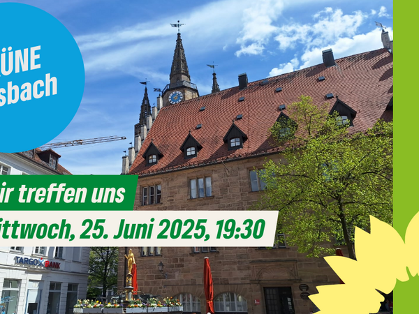 Demokratie lebt vom Mitmachen! Kommt zu unserem offenen OV-Treffen und bringt Eure Ideen für Ansbach ein. Was Euch erwartet: • Austausch zu aktuellen grünen Themen wie Klimaschutz und soziale Gerechtigkeit • Raum für Eure Ideen und Anregungen • Kennenlernen von Gleichgesinnten…