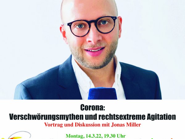 Vortrag und Diskussion, 14.3.22, 19.30 Uhr, online über GoToWebinar VerschwörungsideologIinnen, radikale ImpfgegnerInnen, Staatsfeinde und Rechtsextreme nutzen die Coronakrise, um Stimmung gegen die Demokratie zu machen. Skurrile Theorien zum Virus – auch antisemitische –…