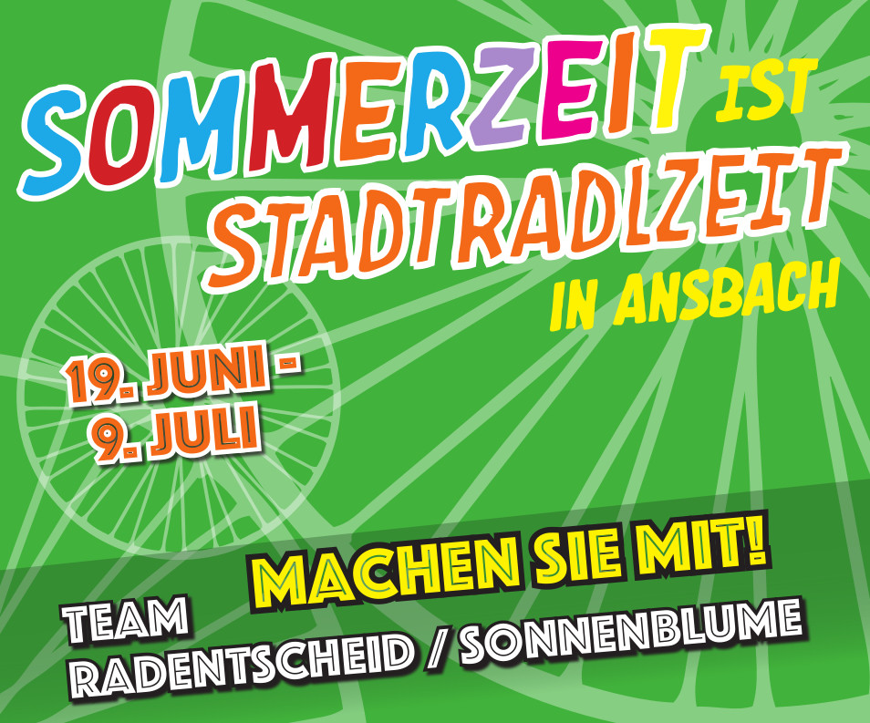 Ansbach/Ortsverband. Wir suchen wie jedes Jahr Mitstreiter*innen, die ihre im Zeitraum vom 19.6. bis zum 9.7.2023 gefahren Fahrrad-Kilometer beim Stadtradeln für das Team "Sonnenblume" eintragen.