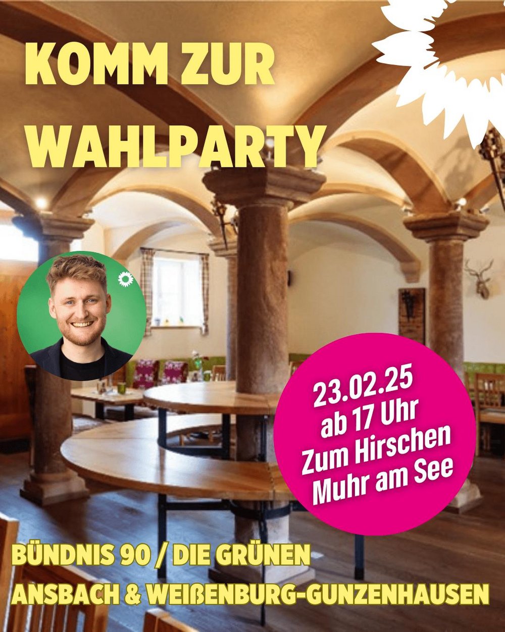 Komm zur Wahlparty am 23.02.2025, ab 17 Uhr im Hirschen in Muhr am See