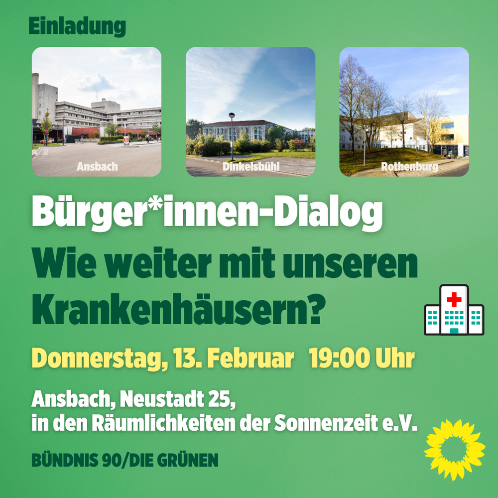 Donnerstag, 13.2.25 19 Uhr in den Räumlichkeiten der Sonnenzeit, Fußgängerzone, Neustadt 25, in Ansbach. Dialog zu unseren Krankenhäuser. Oliver Rühl, Stadtrat, Verwaltungsrat und Kreisvorsitzender wird für Fragen zur Verfügung stehen.