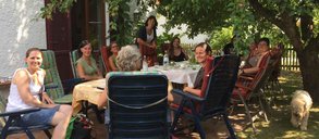Neben dem fachlichen Austausch, blieb aber auch genug Zeit für gemütliches Beisammensein, Kuchen essen und Sonne und kühle Getränke genießen.