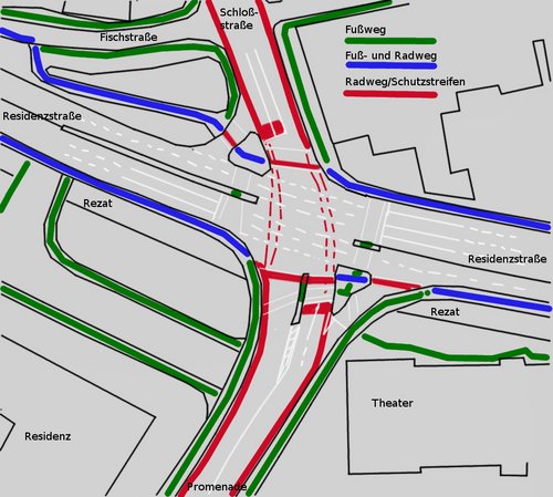 - Der Millionen-Umbau der Schloss- und Schafft-Kreuzung weist gefährliche Planungsfehler bei der Radverkehrsführung auf und hat die Situation für Radelnde insgesamt eher verschlechtert.