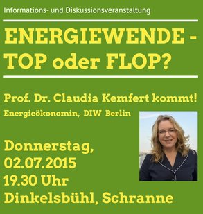 Informations- und Diskussionsveranstaltung „Energiewende - Top oder Flop?“ am 02.07.2015 in Dinkelsbühl mit Prof. Dr. Claudia Kemfert und MdL Martin Stümpfig