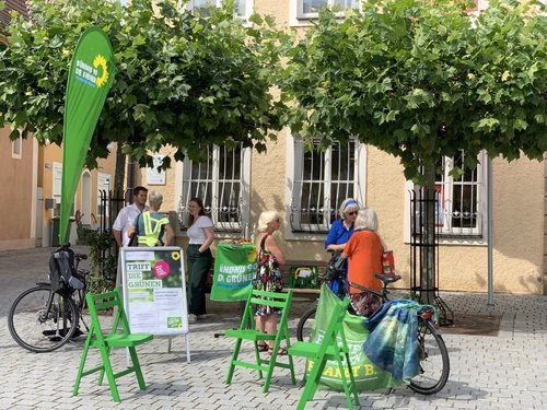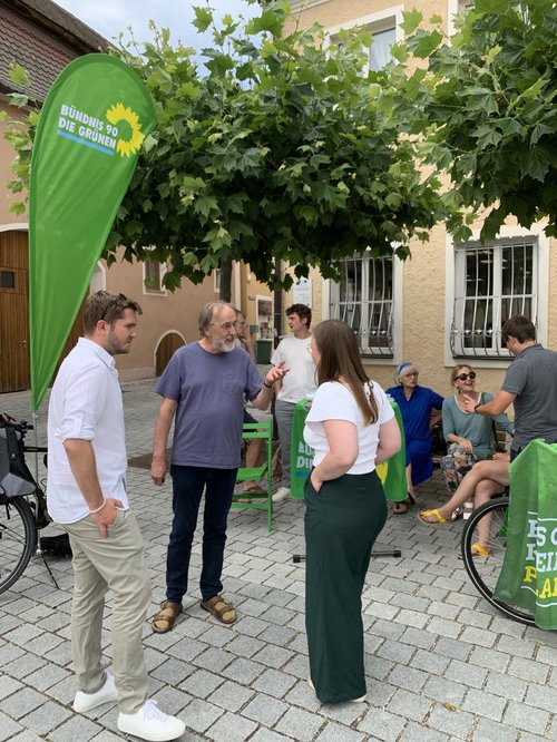 Herrieden. „Im sozialen Bereich sehen wir enormen Handlungsbedarf! Es mangelt an finanziellen und personellen Ressourcen, gerade bei uns im ländlichen Raum. Immer wieder gibt es zwar punktuelle Verbesserungen, aber der große Wurf bleibt bisher aus, auch bei der Wertschätzung.“ Dieses Fazit zog eine Runde der Grünen, die am 14.07.23 zu einem Gespräch in der Caritas Kreisstelle Herrieden und anschließend zu einem Infostand am Marktplatz in Herrieden zusammengekommen war.