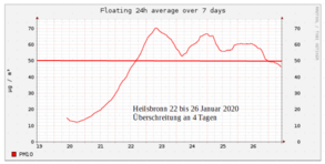 Im 24h Mittelwert wurden 50µg pro Kubikmeter überschritten.
