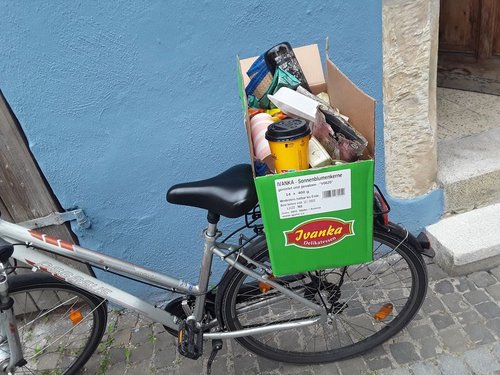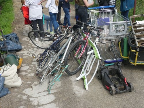 Dafür gab es neue "Schwerpunkte": Zum Beispiel hatte ein Waldstückchen sehr unter der Nutzung der benachbarten Grundstücke gelitten: Den Grüngutkontainer umgaben Plastikfolien und Plastiktöpfe, und von der städtischen Deponie am Haldenweg waren allerhand Fahrradteile und so skurrile Dinge wie ein Einkaufswagen, eine Ampel und eine Wurstschneidemaschine über die Hangkante Richtung Graben gewandert.