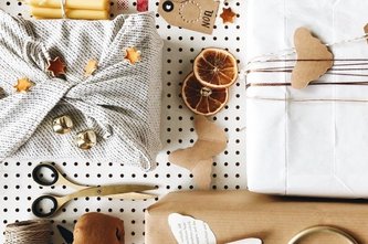 Geschenke lassen sich ganz einfach mit Stoffen und (Geschirr-)Tüchern sowie alten Dosen, Schuhkartons, Zeitungspapier oder Gläsern hübsch verpacken, mit Bändchen aus Stoff, Papier, Bast oder Wolle.