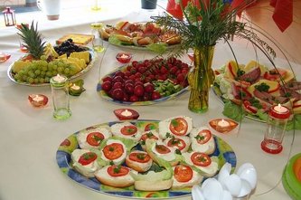 Gesundes Fingerfood spart Arbeit und Spülwasser, es ist außerdem eine schön bunte Dekoration, die sich bis zum nächsten Morgen wie von alleine entsorgt.