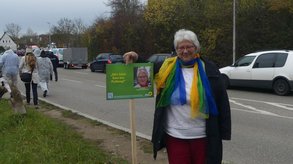An der Karpfenstraße entlang mussten die Teilnehmer dann nach wenigen Metern auf die Fahrbahn ausweichen, weil es zur Gartenstraße und weiter bis zur Ampel keinen Fußweg gibt. Dabei ist da erst vor kurzem ein Neubau entstanden, dessen Stellplätze nun den für Fußgänger notwendigen Raum einnähmen. Am nördlichen Ende der Lücke stelle Inge Müller einen Pflock auf: „Mir fehlt hier ein Fußweg“. Etwas weiter an der Ampel fragte Andrea Söllner, warum hier der Fußweg endet und äußerte sich zu den vielen weiteren Lücken bei den Ansbacher Fußwegen, wie zum Beispiel auf Höhe der Jet-Tankstelle, in der Crailsheimstraße am Landratsamt, in der Eyber Straße an der Firma Jack Link's (Schafft) - oder wenn man vom Bürgerpark zum Campus wolle.