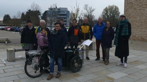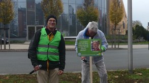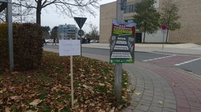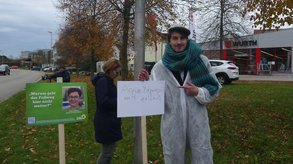 Dann wurden Pflöcke eingeschlagen. An der Überquerungsstelle mit dem Statement von Jana Pesendorfer (Sprecherin Grüne Jugend) und Lisa Renz-Hübner. Die Teilnehmer machten sich auf den Weg um die Hochschule.