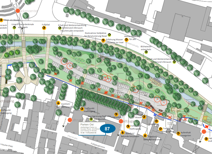 Die Grünen hatten in der Debatte die Variante 2 des Planungsbüros eingebracht, die eine Konzentration der Parkplätze in der Mitte des Areals vorsah, um im Osten eine durchgehende Grünfläche mit Spiel- und Aufenthaltsmöglichkeiten zu schaffen. „Unser Modell hätte nicht nur die Attraktivität des Rezatufers gesteigert, sondern auch am meisten Parkraum pro versiegelter Fläche geschaffen“, erläutert Schmid. Der erfolgreiche ParkingDay 2025, bei dem temporär Spiel- und Begegnungszonen eingerichtet wurden, habe gezeigt, wie groß das Bedürfnis der Bürger:innen nach solchen Freiräumen an der Rezat sei.