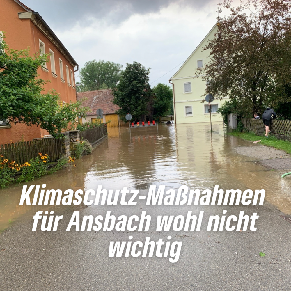 Zum Hintergrund: Ansbach hat sich 2009 ein Klimaschutzkonzept gegeben. Die Umsetzung lief schleppend. Im Umweltausschuss 2021 wurde eine Treibhausgasbilanz mit 18 Punkten vorgestellt. Mit der Umsetzung sollte die Treibhausgasneutralität 2035 erreicht werden mit der Akzeptanz der globalen Erwärmung von 1,75°C. Im Juni 2022 wurden lediglich 6 der 18 Punkte beschlossen.