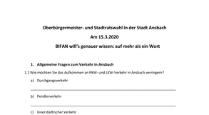 Die Antworten im Folgenden berücksichtigen nicht nur die berechtigten Interessen der jeweiligen betroffenen Anwohner, Pendler und aller Ansbacher Bürger. Wir möchten mit diesen Vorschlägen auch auch unserer globalen Verantwortung gerecht werden und dem Klimawandel entgegenwirken.