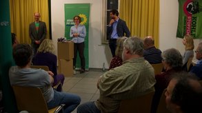 Felix Busch vom Ortsverband Neuendettelsau, der den Abend moderierte, konnte neben den Referenten auch die Landtagskandidatin Gabi Schaaf und die Bezirkstagskandidaten Andreas De Groot - Direktkandidat Stimmkreis Ansbach-Nord (Petersaurach) und für den Stimmkreis Ansbach-Süd / Weißenburg – Gunzenhausen Sven Höfler begrüßen.