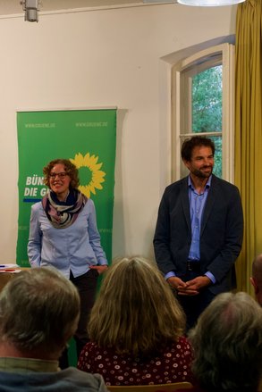 Überraschend deutlich forderte ein Teil der Gäste: „Ihr Grünen müssten angesichts der drohenden Klimaüberhitzung, radikalere Forderungen und Veränderungen herbeiführen“. Verlinden und Stümpfig anworteten beide, dass das derzeitige Tempo bei der Energiewende viel zu gering sei. Je früher der Ausstieg aus den dreckigen, fossilen Energien komme, desto besser werde der Umstieg und die Umsetzung durch die Wirtschaft gelingen. Sonst drohten echte Strukturbrüche.