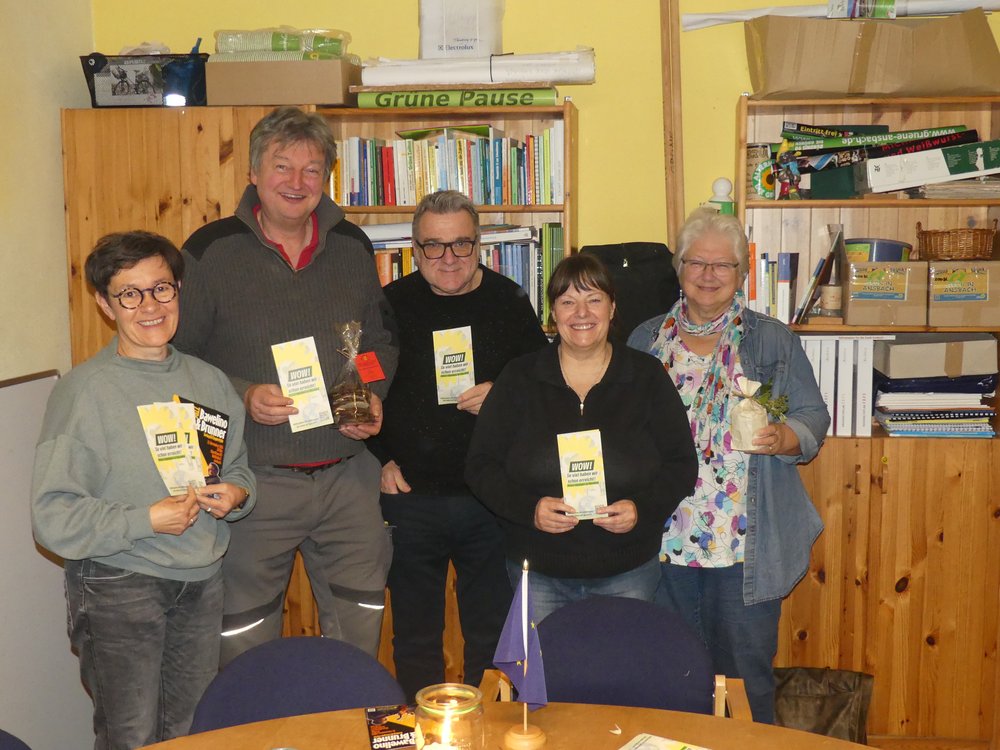 Der neue Co-Sprecher hatte grüne Notfallpfeifen besorgt, die an die Anwesenden verteilt wurden. Der ausgeschiedene Max Kroemer erhielt neben Dankesworten für geleistete Arbeit ein Geschenk, ebenso Inge Müller für die organisatorische Arbeit der letzten Monate.