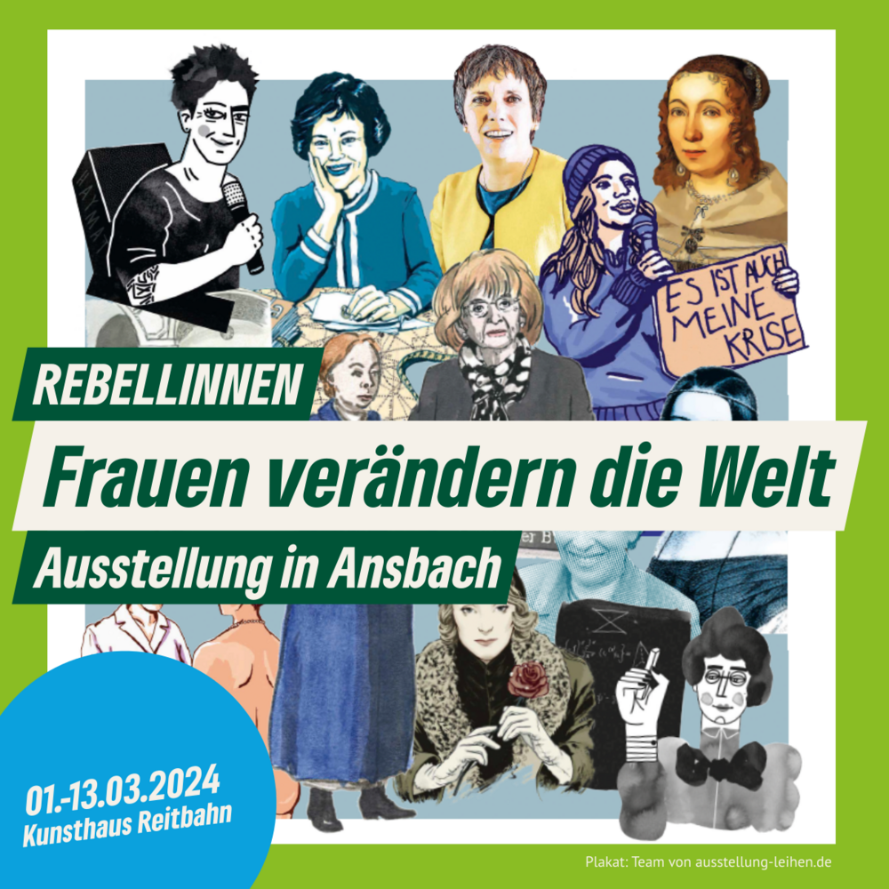Herzliche Einladung zu der Ausstellung "Rebellinnen - Frauen verändern die Welt", die ab dem 1. März im Kunsthaus Reitbahn in Ansbach zu sehen ist.