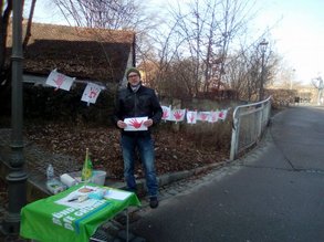 Ansbach. Sven Höfler, Beisitzer im Kreisvorstand und Sprecher des Ortsverbandes Merkendorf hat heute in Ansbach eine Aktion zum "Red Hand Day" durchgeführt. Unterstützt wurde Sven von seiner Frau Anja. Trotz der Kälte war es den beiden wichtig darauf aufmerksam zu machen das weltweit ca. 250.000 Kinder zum Dienst an der Waffe gezwungen werden! In zwei Stunden haben die beiden 25 Unterstützerinnen überzeugt.
