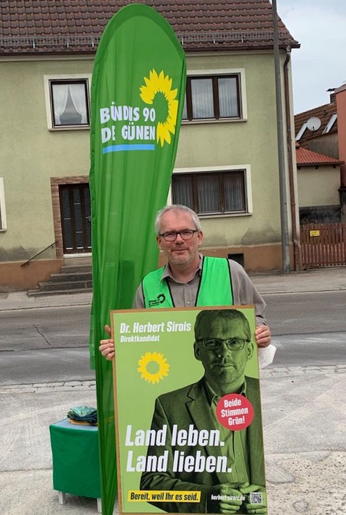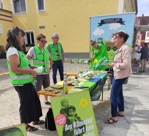 Bechhofen. Unseren Flyer mit Verkaufsstellen von regionalen, biologischen und fairen Produkten haben wir am vergangenen Samstag, 07.08.21, gemeinsam mit Dr. Herbert Sirois in Bechhofen vorgestellt. Am Infostand hatten auch unsere Plakate und die anderen Materialien für die Bundestagswahl ihren ersten großen Auftritt. Wir finden, sie machen sich ziemlich gut. Auch der Flyer stieß auf reges Interesse aus der Bevölkerung und so kamen einige interessante Gespräche über alternative Einkaufsmöglichkeiten und andere GRÜNE Themen zustande.