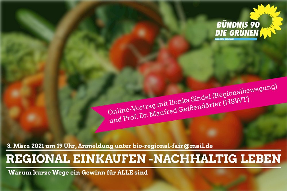 Herrieden. 3. März 2021 um 19:00. In unserem Onlinevortrag der Arbeitsgruppe „Bio-Regional-Fair" des Grünen-Ortsverbands Herrieden-Bechhofen sprechen wir mit zwei fachkundigen Referent*innen über das Thema "Regional einkaufen".