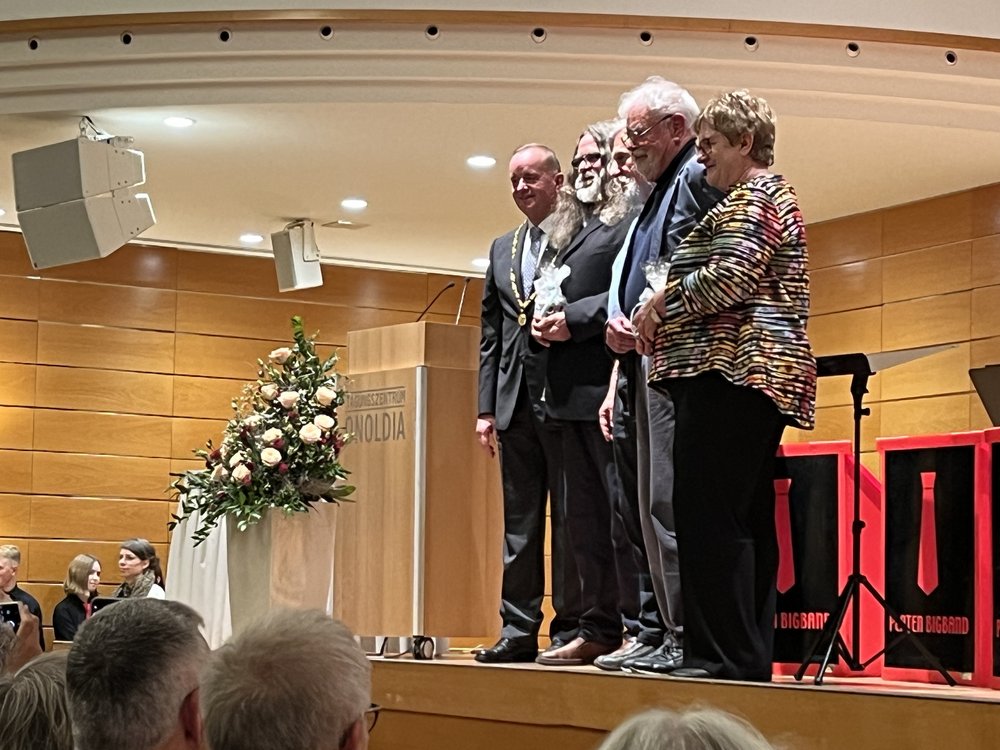 Ansbach/Stadtratsfraktion. Wir gratulieren den beiden Kulturschaffenden Rolf Fütterer und Willi Probst zur Verleihung des Kulturpreis 2024 der Stadt Ansbach. Wie es sich gehört, veranstaltete die Stadt Ansbach im Onoldiasaal , musikalisch begleitet von der Bigband des Platon-Gymnasium Ansbach, zu ehren den beiden Preisträger einen Empfang. Die Laudatio für Willi Probst hielt Inge Brumm, für Rolf Fütterer war Hannes Hüttinger.