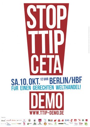 Der Kreisverband Ansbach beteiligt sich am landkreisweiten Bündnisses STOP TTIP Stadt und Landkreis Ansbach und ruft zu zahlreicher Teilnahme an der Großdemonstration am 10.10.15 in Berlin auf.