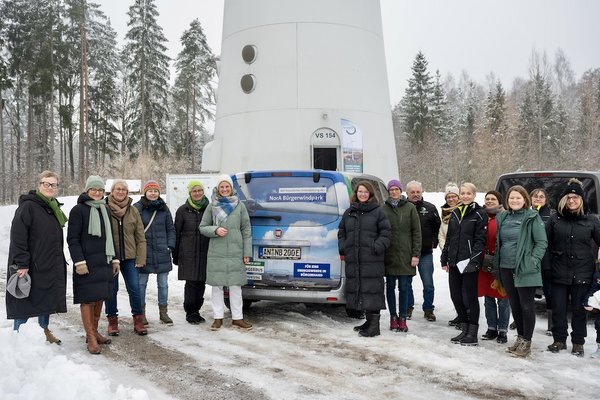 Zu den besonderen Gästen zählten die Bundesvorsitzende von Bündnis 90/Die Grünen, MdB Dr. Franziska Brantner, sowie die Vorsitzende der GRÜNEN Bayern, MdL Eva Lettenbauer. Dr. Franziska Brantner unterstrich bei der Besichtigung des Bürgerwindrads die wirtschaftliche Bedeutung erneuerbarer Energien: