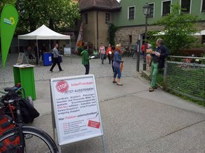Der Ortsverband "ªAnsbach"¬ veranstaltete am Samstag den 9.5. an der Riviera in Ansbach einen Infostand zu den Themen "ªTTIP"¬, "ª#CETA"¬, & Co und zum Gewerbegebiet "ªInterfranken"¬.