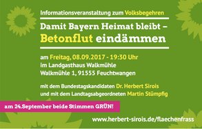 Am Freitag haben wir Grünen, gemeinsam mit der AbL und der ÖDP in Bayern das Volksbegehren gegen den Flächenfraß "Damit Bayern Heimat bleibt - Betonflut eindämmen" gestartet. Zum Start des #Volksbegehren haben wir GRÜNEN in Stadt und Landkreis Ansbach am Freitag einen Informationsveranstaltung organisiert. Referenten des Abends waren Dr. Herbert Sirois, stell. Vorsitzender der Kreisgruppe Ansbach des Bund Naturschutz und grüner Bundestagskandidat, sowie Martin Stümpfig, Landtagsabgeordneter aus Feuchtwangen, der in der grünen Landtagsfraktion für das Thema Landesplanung zuständig ist.