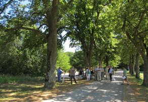 Weiter ging es zur Mutschachallee, wo die Ostumgehung mit einen Tunnel unten durchführen soll. Man zeigte, wo etwa der Tunneleingang bzw. -ausgang sein soll. Das der derzeitige schöne Anblick der Mutschachallee dann zerstört sein wird, war Jeden klar. Auch wurde aufgezeigt, dass für die Kinder, die zum Training zum Gelände der Sportfreunde wollen, eine Gefahr durch den Straßenverkehr besteht.