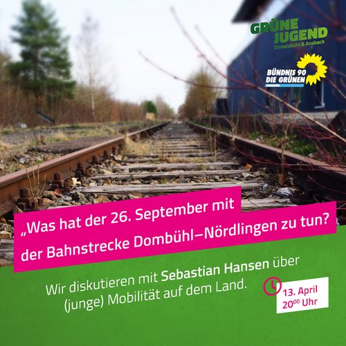 Neben dem Ausbau von Fahrrad Infrastruktur, ist es auch maßgeblich die Schiene zu stärken. Die Bahnstrecke Steinach-Dombühl-Nördlingen ist seit Jahrzehnten stillgelegt. Was muss also getan werden, um Bahnreaktivierungen leichter zu machen, und so die Mobilität in ländlichen Regionen- auch ohne Auto- zu stärken?