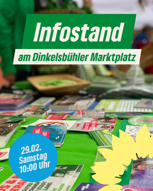Am Samstag den 28.02.26 findet unser dritter Infostand für die Kommunalwahl im März statt. Wir sind ab 10:00 Uhr am Dinkelsbühler Marktplatz anzutreffen. Wir freuen uns auf den Austausch mit euch.