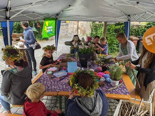Für die Kinder gab es ein kostenloses Glücksrad mit vielen schönen Gewinnen. Besonders gut kam das Basteln mit Naturmaterialien an. Highlight ware die schönen Blumen-Haarkränze, die überall auf dem Fest zu sehen waren.