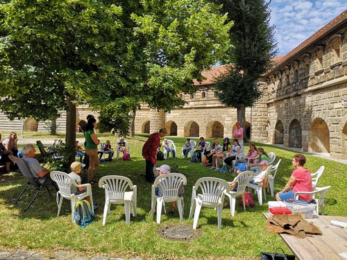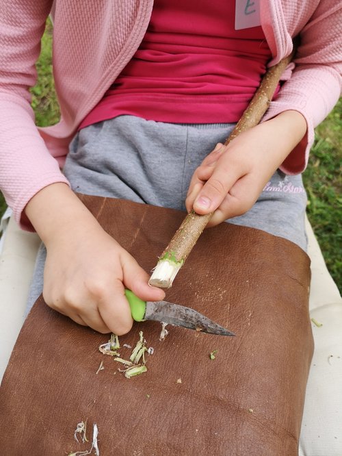 Lichtenau - Eine tolle Veranstaltung bei herrlichem Sommerwetter war unser Schnitzworkshop. Unter schattigen Bäumen im Innenhof der Festung schnitzten knapp 20 Kinder verschiedenste Gegenstände aus Haselnuss-Ästen. Es entstanden Mikadostäbe, Holzmesser und vieles mehr.
