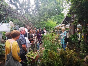 Oberdachstetten/Lichtenau. Mit über 20 Gästen besuchten die Grünen aus Lichtenau und Sachsen den Hortus Romanticus von Karin Brenner in Oberdachstetten. Nachdem Karin zwei Wochen vorher einen Vortrag zur Gestaltung in Lichtenau gehalten hatte, konnten die Besucherinnen und Besucher nun das sog. 3-Zonen-Konzept vor Ort erleben. Der Rundgang durch den wundervoll natürlichen Garten mit vielen Erklärungen über Pflanzen und Tiere führte von der naturbelassenen Pufferzone über die Hotspots für Insekten zur Ertragszone mit Gemüseanbau.