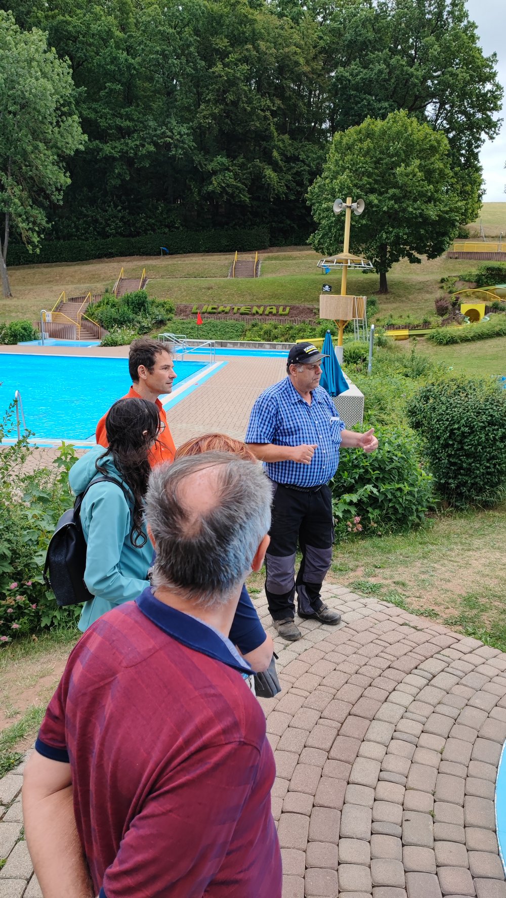 Lichtenau - Unser MdL Martin Stümpfig besuchte heute das Lichtenauer Schwimmbad und tauschte sich mit Vertretern von Förderverein und dem 2. Bürgermeister aus. Gemeinsames Ziel ist die langfristige Sicherung des Bades trotz der angespannten Finanzlage. Hierzu wurden verschiedene Ansätze zur Kostensenkung diskutiert. Beeindruckt zeigte sich Martin von dem großen Engagement des Fördervereins, der schon über 130 Mitglieder hat. Bezüglich Fördermöglichkeiten und anderer Maßnahmen wird Martin mit dem Förderverein im Kontakt bleiben und sich für unser Lichtenauer Bad einsetzen.