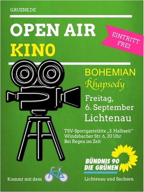 Bei der Begrüßung zum Openair-Kino der knapp 100 Zuschauer wies Philipp Schwertner, Mitglied der Grünen in Lichtenau und Sachsen b.A., darauf hin, dass für die Grünen Politik nicht nur die Mitwirkung in Gremien, Räten oder Ausschüssen ist, sondern auch das Leisten eines kulturellen Beitrags zum Gemeinwohl.