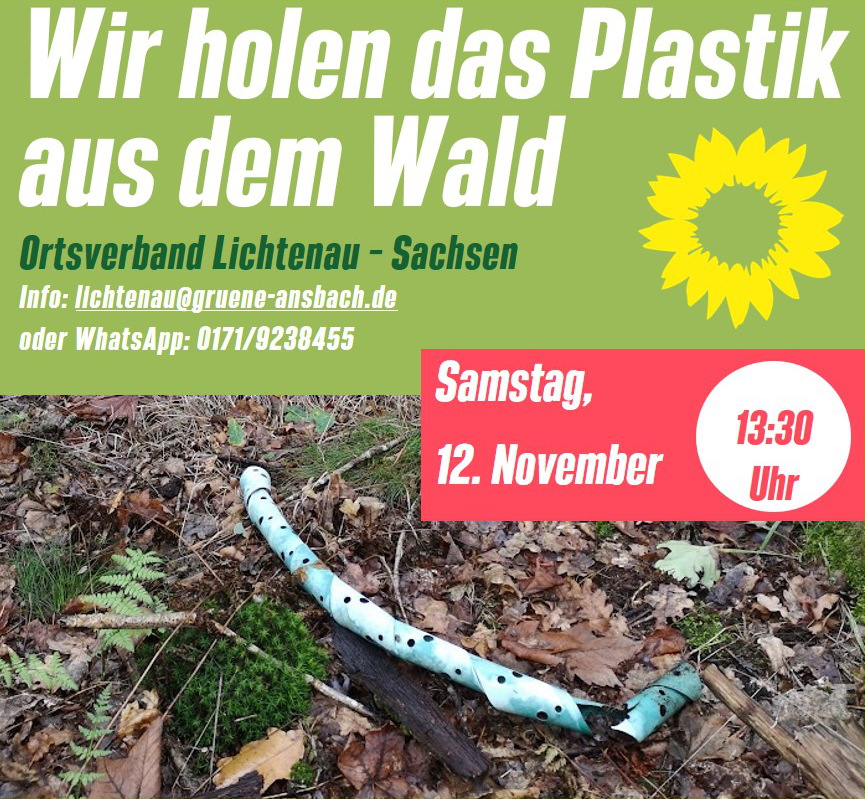Bei dieser ehrenamtlichen Aktion sammeln wir in einem nahegelegenene Waldstück große Mengen bereits zerfallener Plastik-Baumhüllen, die ansonsten in der Natur verbleiben würden. Dauer der Aktion ca. 90 Minuten. Anschließend gibt es eine Brotzeit.