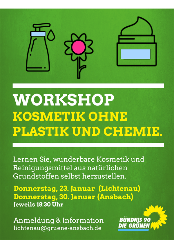 In diesen Workshops lernen Sie, verschiedene Kosmetikprodukte und Reinigungsmittel mithilfe einfacher und natürlicher Stoffe selbst herzustellen. Dabei verzichten wir auf Mikroplastik und chemische Zusätze.