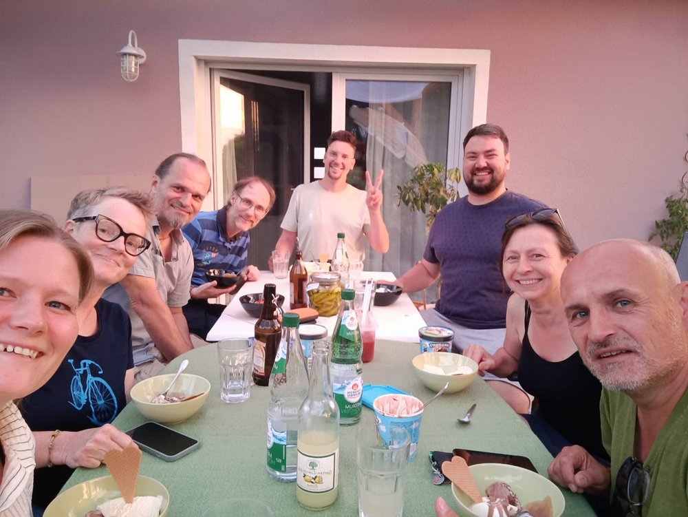 Bei unseren OV Sitzungen geht es wie man auf dem Bild sieht ganz gemütlich zu. Wir legen auch Wert auf gutes Essen und Trinken :-) und gute Gespräche.