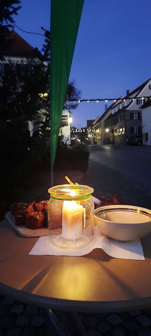 Wie jedes Jahr bieten wir den Merkendorfern bei Tee, Glühwein und Gebäck an, mit uns in Gespräch zu kommen und freuen uns auf Besuch.